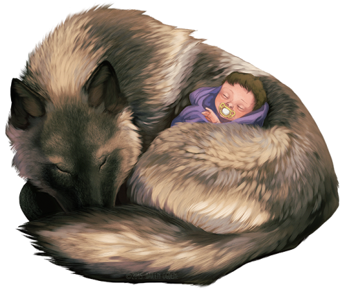 Awww … I was going to say it was Fenrir and his little sister Hel (in some versions of the stories it was her bottom half that was skeletal.) Lovely either way though!
