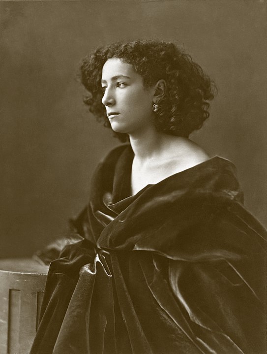 Images: Sarah Bernhardt in 1864, age twenty, photographed by Félix Nadar; Bernhardt with her mother—both public domain via Wikimedia Commons.