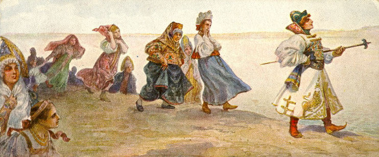 But no matter. In Eisenstein’s understanding, Kurbsky and Kolychev mirror Ivan in different ways. Kurbsky wants the same things Ivan does, but for himself. He woos Ivan’s wife, he yearns for Ivan’s crown, and when he doesn’t get those things, he abandons Russia for its western neighbor, Poland-Lithuania, hoping for advancement there. Kurbsky doesn’t object to Ivan’s goals, only to watching someone else take the spoils.
