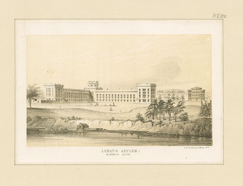 For my next novel I’m writing a dual timeline story about Nellie Bly, an intrepid young journalist who agreed to be committed to a lunatic asylum in order to report on conditions from the inside. In 1887, the Blackwell Island Lunatic Asylum was not a prison, but for the women committed there, it might as well have been. Here’s very different scene from the one above, when Nellie first arrives in Hall 6: