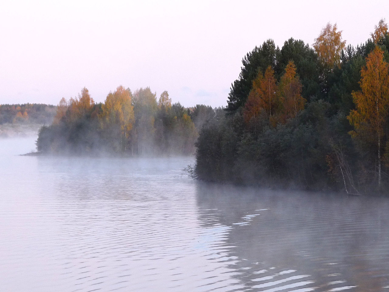Images: Sheksna River in mist © 2009 Michael Clarke CC 2.0 via Wikimedia Commons; Legends of the Five Directions advertisement © 2018 C. P. Lesley.