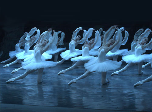 Image from Wikimedia Commons. The photograph of the ballerinas dancing the Entrance of the Shades from La Bayadere (2011) was released under a Creative Commons 3.0 license by the photographer, who goes by the name of WhiteAct.