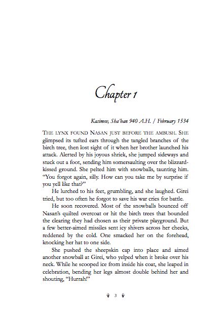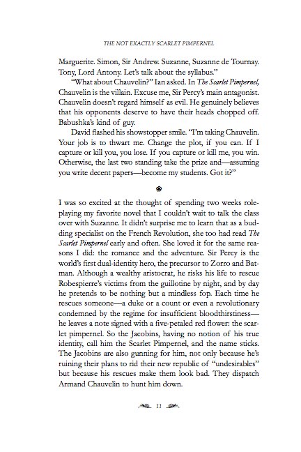 I’ll use my own two novels as examples, because I know them best and own the rights to post screenshots of them. To start, let’s talk about some things that you can do in Word without a lot of effort. It’s relatively easy to set up a chapter title style that starts on a new page with spacing above and below and a specific typeface that you can change from book to book. If you compare the first pages in The Not Exactly Scarlet Pimpernel (first) and The Golden Lynx (second), you can see that NESP uses Edwardian Script, a splashy 18th-century-like cursive with curlicues and rounded letters that evokes the time period of the novel: revolutionary France and aristocratic England in 1792. Lynx has chapter headings in Tangerine, an Arabic-style script with elongated letters that approximate in English the style that the heroine might have used in writing Tatar. Sites like FontSquirrel let you search for fonts, check their licenses, and download them free of charge. You can also buy fonts from dedicated fontmakers.
