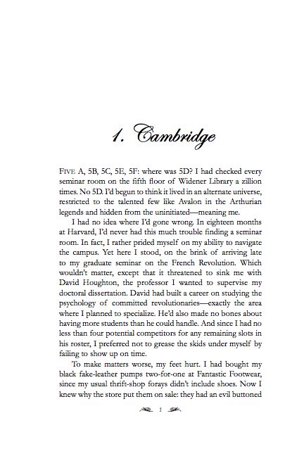The body text in both books is set in Garamond, a classic serif typeface that has been around since the 16th century. It ships with Word. The first line of each opening paragraph, whether marking a new chapter or a new section within a chapter, is not indented, per standard publishing practice (note that The Stockholm Octavo does have indented first paragraphs for the chapters, although not for sections, presumably to show off the gray script). Again, most word processors let you set up a non-indented first line. The first line of each chapter also includes words in small caps: you can do this mechanically in Word but not as part of a style.