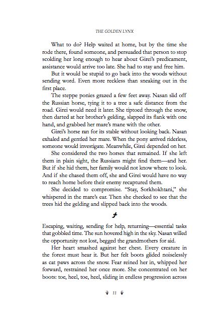 The type ornaments separating the sections (five-petaled flowers for NESP and Turkish daggers in Lynx) are centered with space above and below: if you have the right font, you can set those in Word. The page numbers, though, also have surrounding type ornaments that vary from book to book and reappear on the title pages. These are perfectly positioned in InDesign with something called a flush space, which expands as needed to fit the edges of an invisible box that contains the page number (calculated by the software) and the ornaments. As the page numbers go higher, the space between them and the ornaments contracts evenly on both sides while the dimensions of the invisible box remain unchanged. Word-processing programs have no equivalent. Controlling spacing, vertically justifying pages, managing paragraph breaks and page breaks: these things are more difficult, more time-consuming, and at times flat-out impossible in word-processing programs.