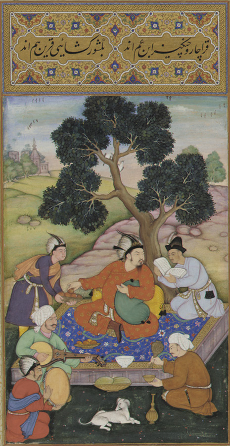 Courtesy of the Smithsonian Institution, Freer Gallery of Asian Art, F1952.2 Folio from the Gulshan Album (Rose Garden album); Mongol chieftain with attendants resting in the countryside, ca. 1600, Mughal dynasty, Jahangir (r.1605-27)