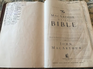 One of my friends, commented, That poor old MacArthur Bible. She was referring to my Bible’s pitiful appearance. The spine has a seam down the front from all the times I’ve opened and closed it. The title is barely readable, and the leather cover is worn through on the edges to reveal the fabric beneath it.