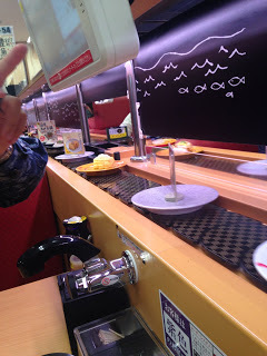 After I exchanged hugs and happy squeals with my daughter and son-in-law, Michael announced, "You have to eat sushi for your first meal in Japan."