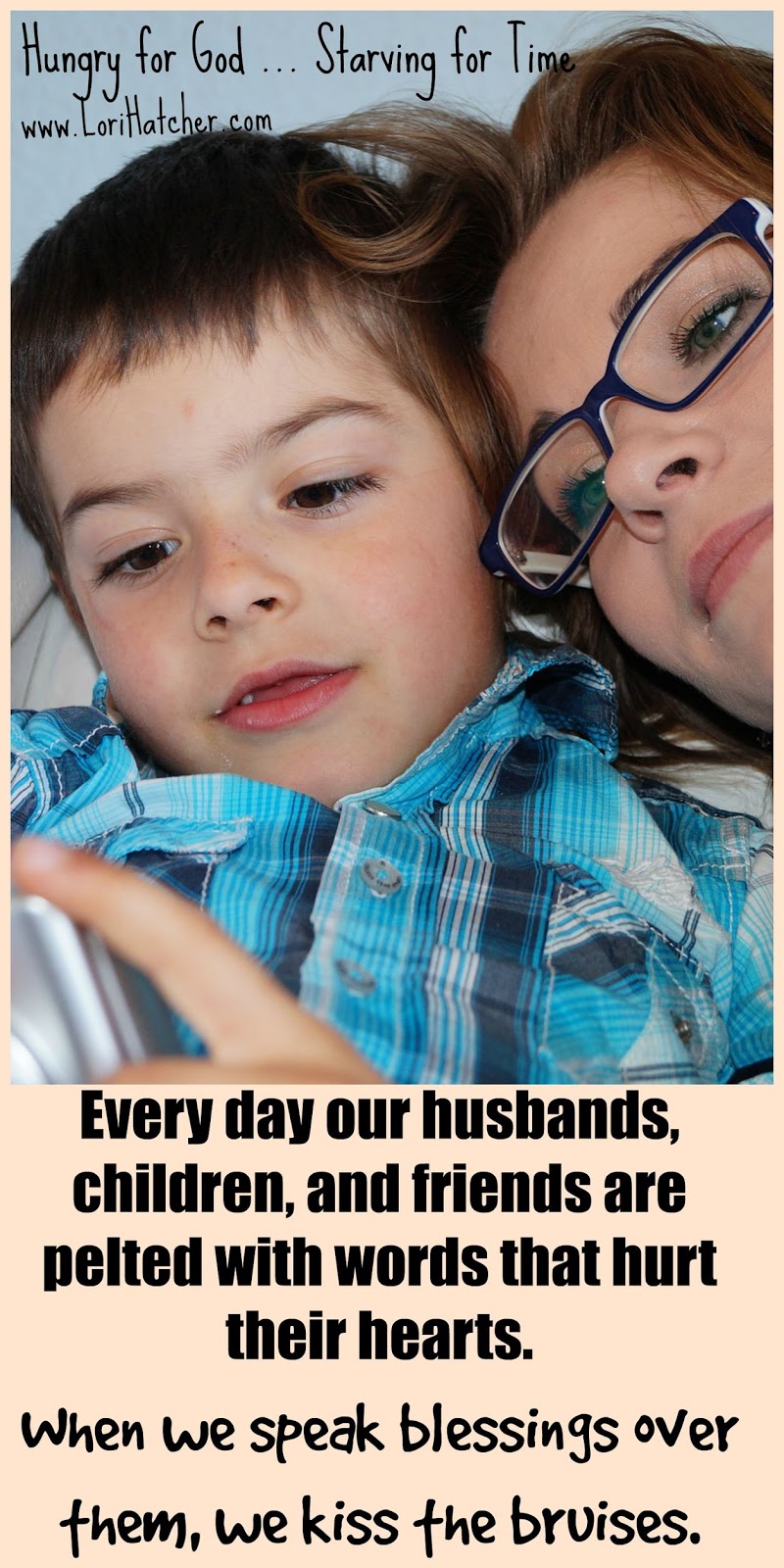 We live in a world characterized by negativity. Every day our husbands, children, and friends are pelted with words that hurt their hearts. When we speak blessings over them, we kiss the bruises.