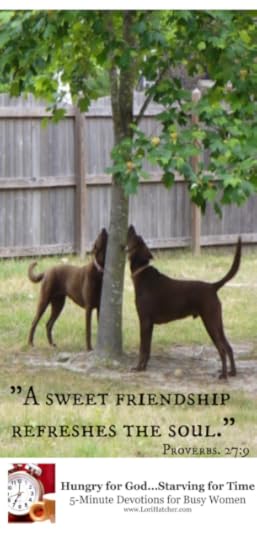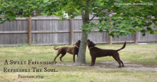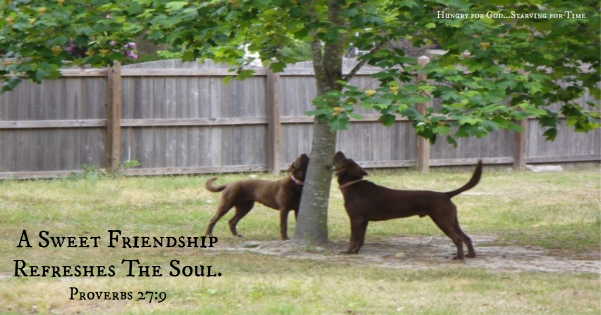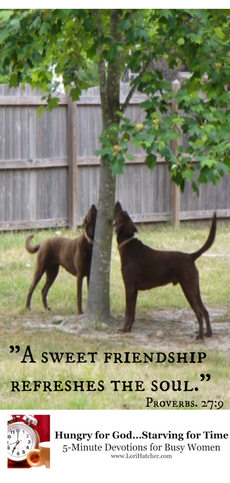This picture reminds me of my friend Heather. If there were speech bubbles above the dog’s heads, hers would say, “We can do this. God will help us. We thought it was a squirrel, and it turned out to be a cheetah, but with God on our side, we’ve got this.” Proverbs 27:9 (MSG) says, “A sweet friendship refreshes the soul,” and it is true.