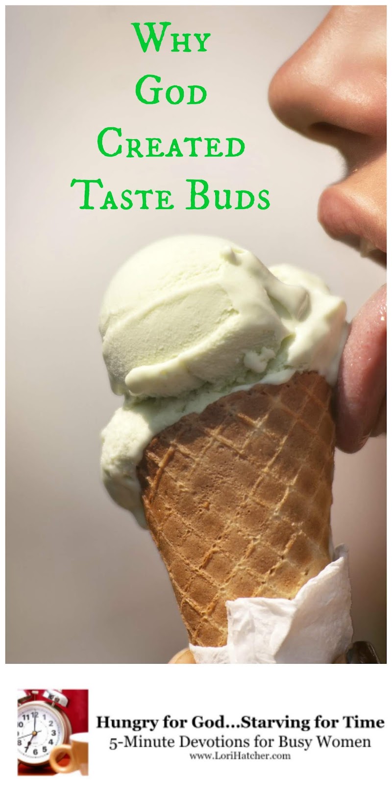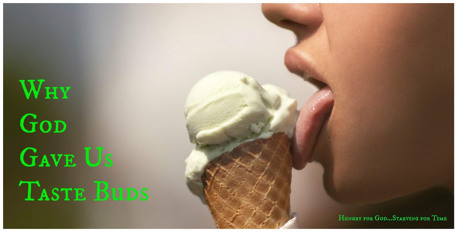 Taste buds. Yep, that’s what I wrote in my journal today. Thank you, Lord, for taste buds. Has it ever occurred to you that God didn’t have to create us with taste buds? He could have made us like dogs, who only have enough taste buds to determine if their food is spoiled and could kill them.