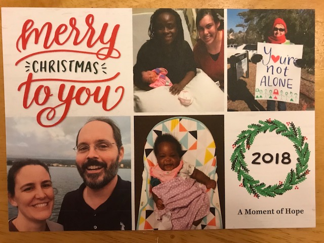 Earlier that morning, my husband and I had pulled a Christmas card off the top of the stack of cards we received last month. The card was from A Moment of Hope.