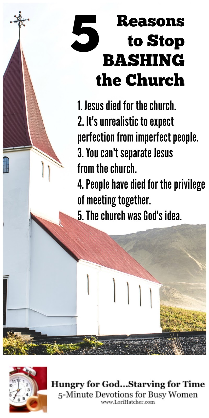 1. Because Jesus Christ loved the church and gave himself for it (Eph. 5:25). He didn't love online communities, parachurch organizations, or social clubs. He loved the church—so much that He died for it. In my opinion, that's reason enough to stop bashing it. 2. Because churches are made up of imperfect people like you and me. Immature, selfish, inconsiderate, and sometimes rude. Loving, caring, sacrificial, and sometimes beautiful. We are flawed and frail, but little by little, God is changing us and making us more like Jesus. You wouldn’t leave a hospital because there were sick people in it, and you shouldn’t leave the church because there are sinners in it. Sick people go to a hospital because they’re sick, and sinners go to a church because they’re sinful. The transforming power of Jesus is the only hope we have for change, and Jesus does his best work through the church.