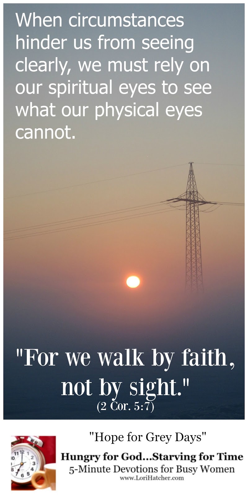 This is why “we walk by faith, not by sight.” When circumstances blur our vision and keep us from seeing clearly, we must rely on our spiritual eyes to see what our physical eyes cannot.