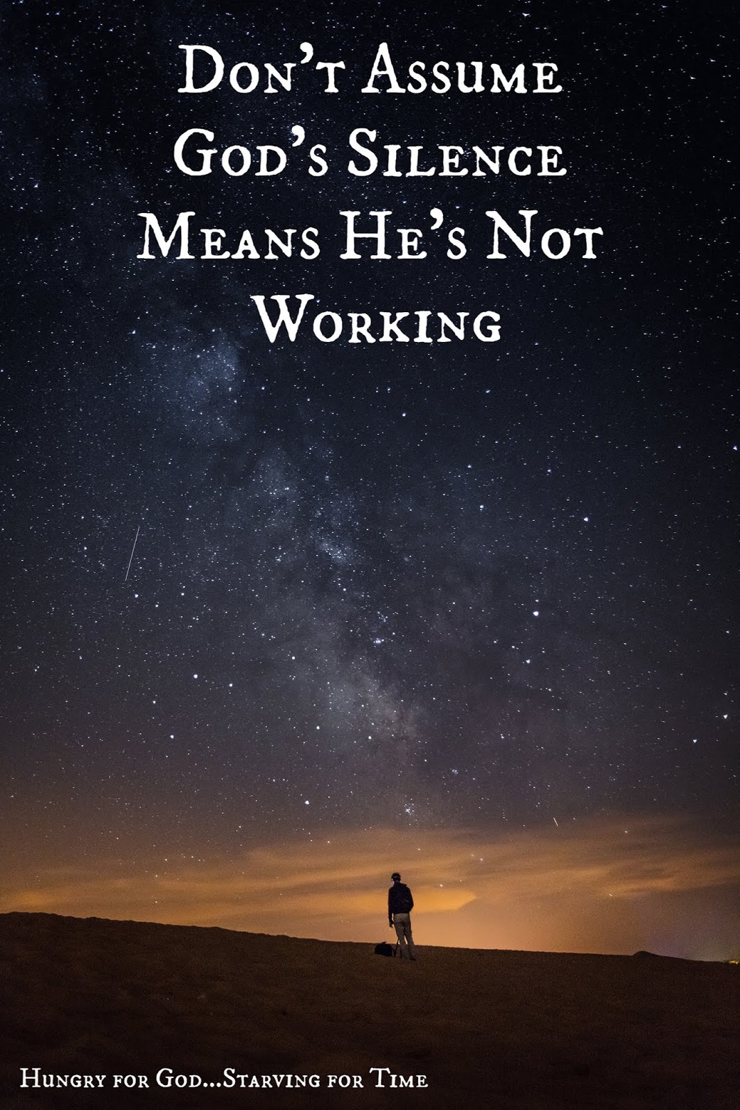 Whatever it is, don’t assume God’s silence means he’s not working. Cling to faith, for "without faith it is impossible to please God, because anyone who comes to him must believe that he exists and that he rewards those who earnestly seek him,” the writer of Hebrews reminds us (11:6).