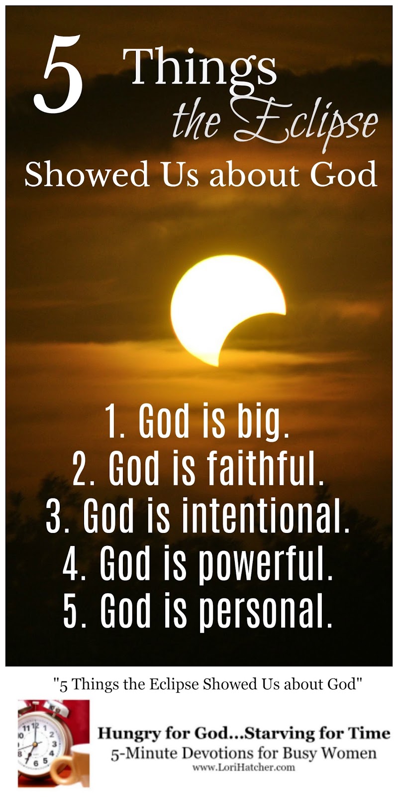 Monday’s solar eclipse reminded me of five truths about God: 1. God is big. Bigger than the sun, the moon, and the galaxies.