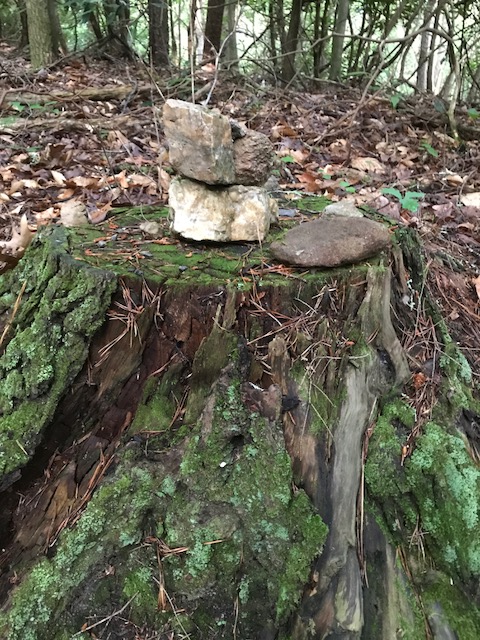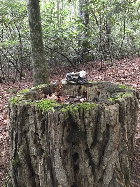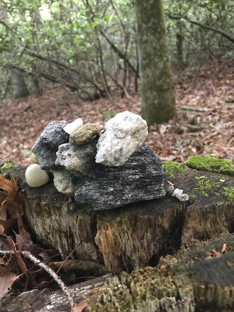 Because a sign near the stone wall asked visitors not to enter the enclosed altar area, I chose a tree stump as my holy place. One by one I laid the stones upon my “altar,” calling each beloved’s name as I surrendered them to the Lord. With each stone I released, I felt my spirit lighten.
