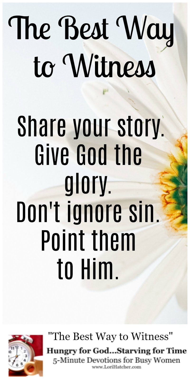 The next time an opportunity arises, take a deep breath, ask the Holy Spirit to give you the words, and tell someone about Jesus. Tell them about the miracle he’s done in your life. Describe how sin prevented you from having a relationship with God, but that Jesus paid the penalty for your sin on the cross. Encourage them to repent and turn to God for the life transformation they desperately need. What’s the best way to witness? Tell others what Jesus did for you. When the proof of God’s miraculous power is standing right in front of them, it’ll be mighty hard to argue.