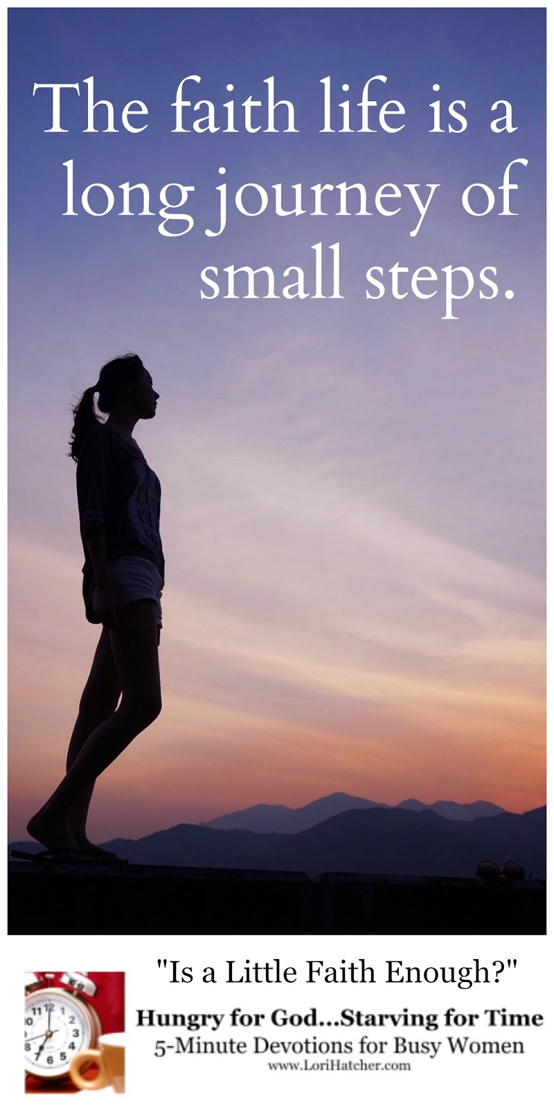 The faith life is a long journey of small steps. Every time I trust God with something, my faith grows, and it becomes easier to trust him with the next thing. I don’t know if I’ll ever reach the point where I can trust God without even a smidgen of doubt, but every faith step I take in his direction brings me closer to that ideal. One day, like the centurion in Luke 9, I hope to amaze Jesus with my faith.