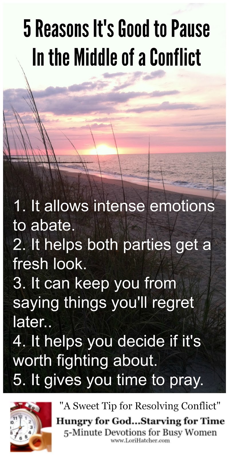 5 ways taking a rest in the midst of a #conflict is helpful. Lori Hatcher on Hungry for God #faith (Click to Tweet)