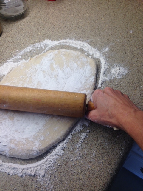 Ten minutes later I had talked myself into trying it one more time. After all, I had a lot of ingredients tied up in that lump of dough. I pushed my sleeves up past my elbows and picked up the rolling pin. I was prepared to wrestle that dough into submission.