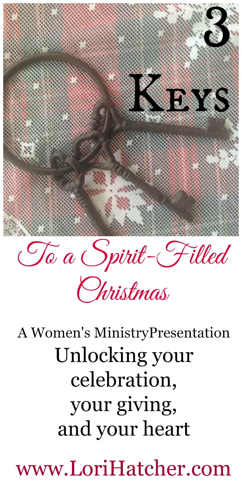 If you're interested in bringing 3 Keys to a Spirit-filled Christmas to your church or women's event, please pass along the information below to your women's ministry coordinator or contact me at LoriAHatcher@gmail.com.