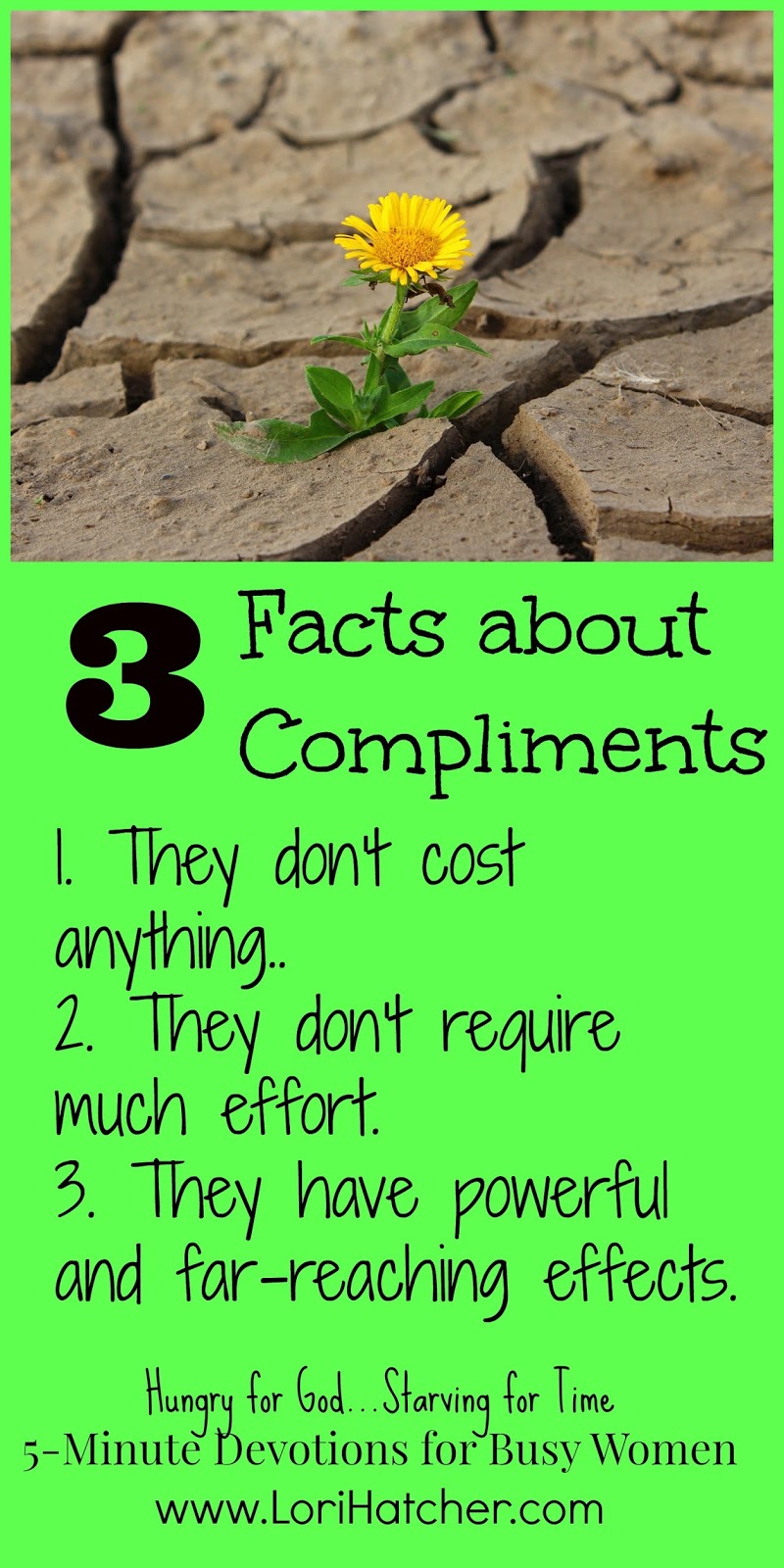If you are, purpose to speak at least one sincere compliment to someone you encounter today. Note how they respond and how it makes you feel. Then leave a comment below to share your experience.