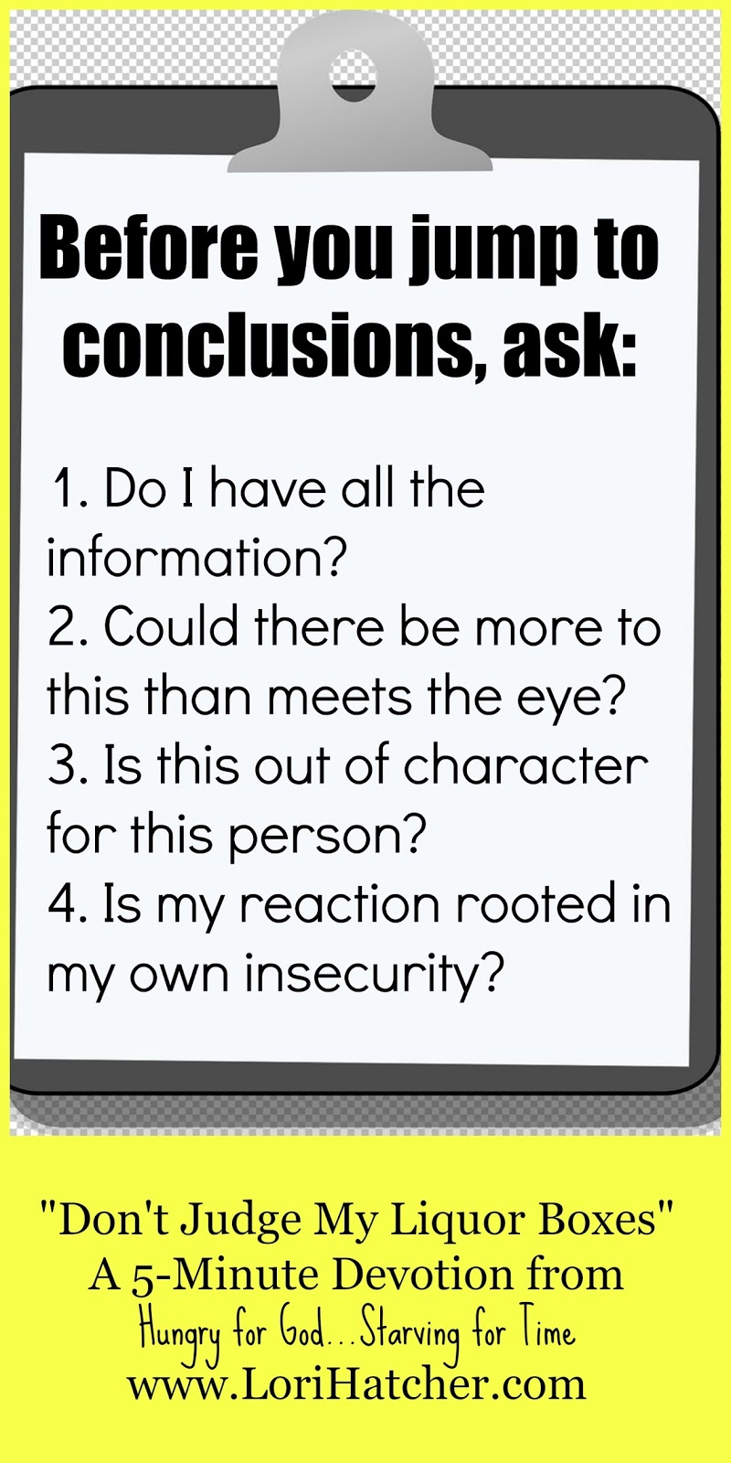 So often we draw conclusions without giving others the benefit of the doubt. We automatically assume the worst, and act based on those faulty impressions. We create conflict that isn’t there, and set in motion a course of events that doesn’t need to happen.
