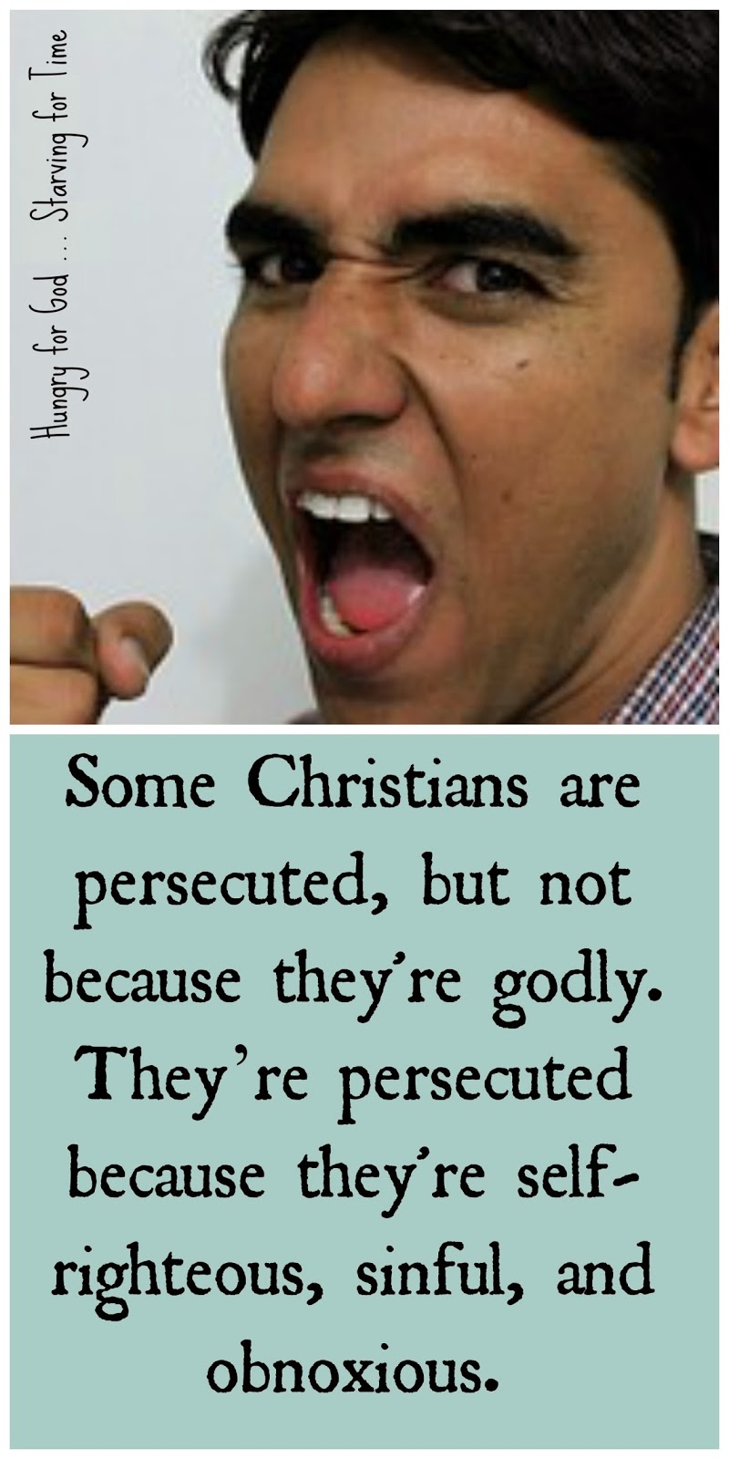 Some believers are persecuted, but not because they're godly. They’re persecuted because they're self-righteous, sinful, and obnoxious. Naming the name of Christ doesn’t automatically make their persecution Christian persecution. They are being persecuted for their own sinfulness.