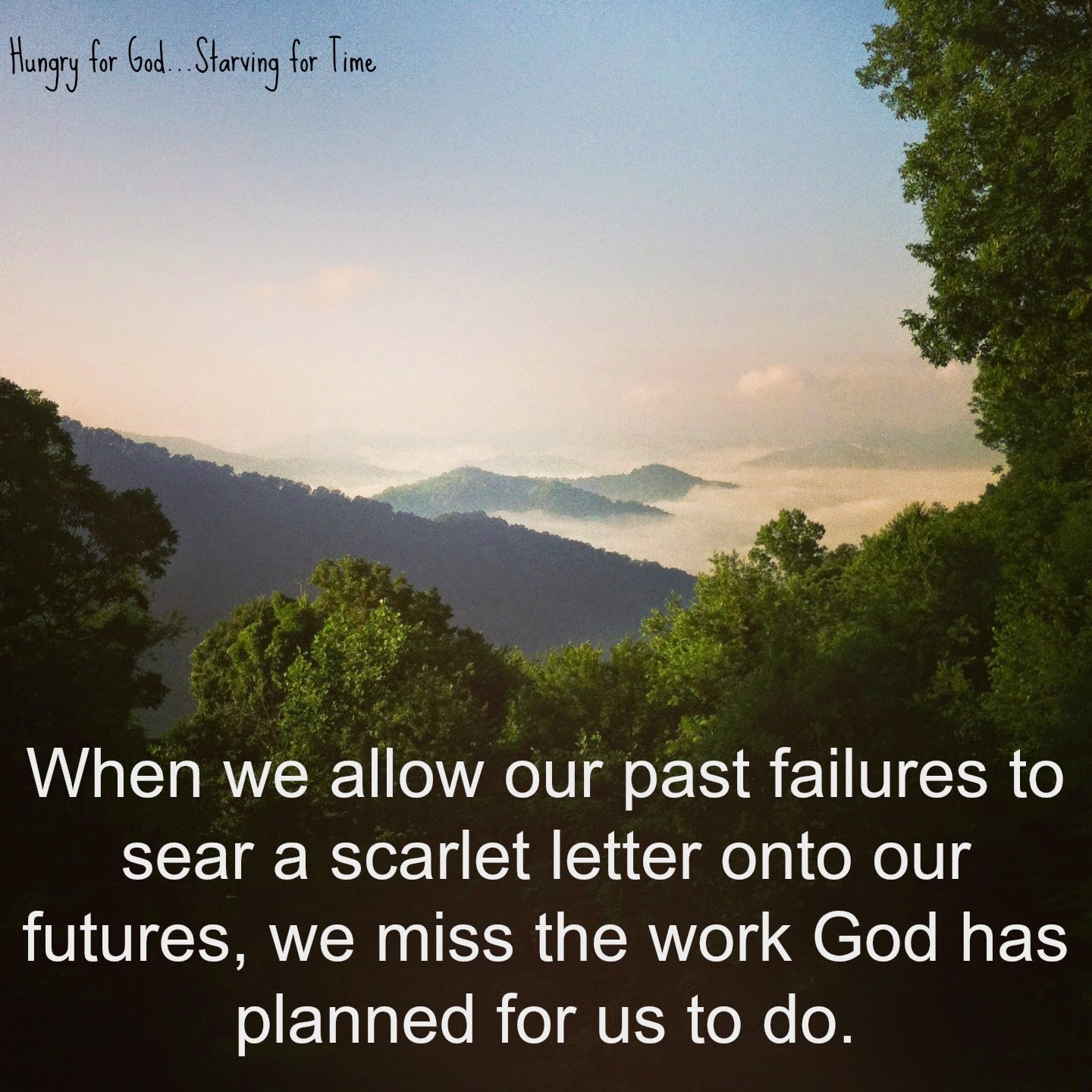 Which brings us to ourselves. What happens when we can’t move past our failures? When we don't live in light of God’s forgiveness? When we continue to crucify ourselves because of our past sins? When we allow our past shortcomings to sear a scarlet letter onto our futures?We miss the work God has planned for us to do. Significant work. Life-changing work. Eternal work.