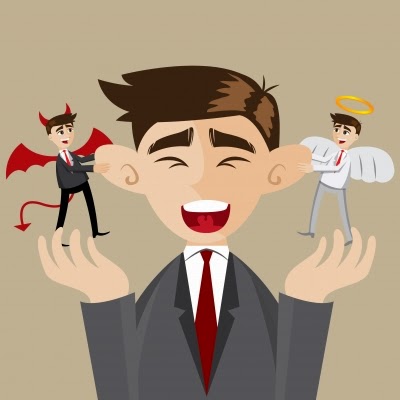 CreditWe’ve seen the spoofs – a character in a cartoon or television show is struggling to decide between right and wrong. Suddenly, a tiny angel dressed in white with a halo over his head appears on one shoulder. A contrasting angel appears on his other shoulder, usually dressed in black or red and sporting a pitchfork. Each tries to influence the person’s behavior. We laugh and nod at these scenes, acknowledging the struggle we all experience when trying to make a decision between right and wrong.