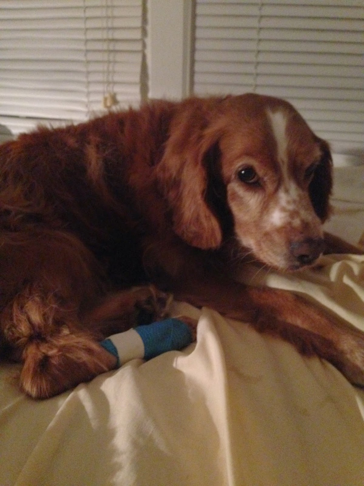 Update on Winston:Winston (and his family) would like to thank all of you who prayed and sent well wishes (and get well bones). He's recuperating nicely despite losing a toe during his operation. The pathology report came back clear, and he's looking forward to chasing squirrels again very soon.