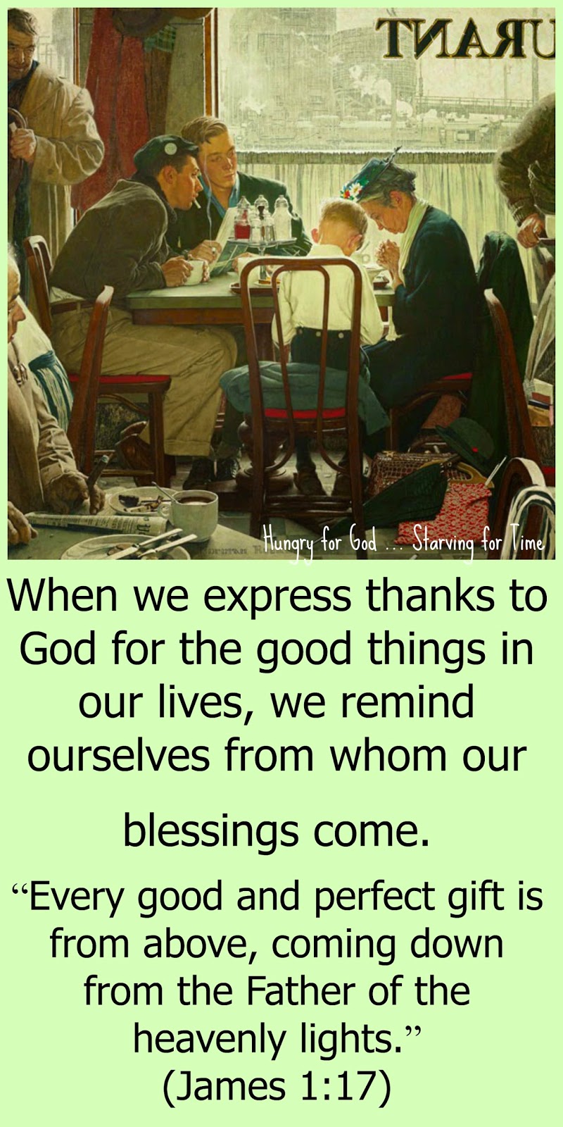 One summer evening as we took our places at the table, I asked who would like to return thanks for the meal. My daughter volunteered. Closing her eyes tightly, she began. “God, thank you for the meatloaf, smashed potatoes, gravy, and . . .” She paused to peek at her plate. Scrunching up her nose in disgust, she asked in a stage whisper, “Do I hafta say thank you for the squash?”