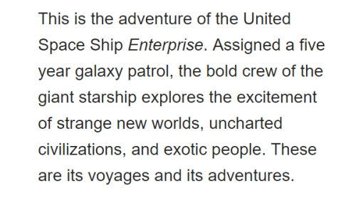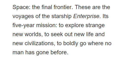 The power of rewrites. Above: Gene Roddenberry’s original opening narration for Star Trek and beneath it, the edited and rewritten version that was eventually recorded by William Shatner for the show. With all affection, it’s hard to imagine a worse version of the narration than that first draft.
