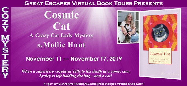 When a superhero cosplayer falls to his death at a comic con, Lynley is left holding the bag— and a cat!