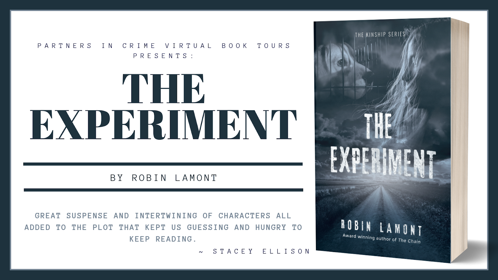 Book Details:Title: The Experiment Author: Robin LamontGenre: SuspenseSeries: The Kinship Series, book 3Publisher: Grayling Press (May 16, 2019)...