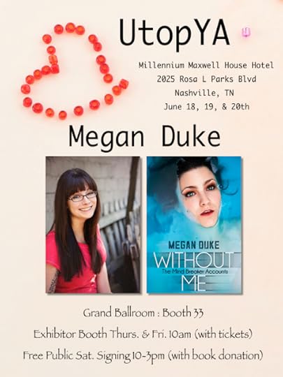 I'll be promoting Without Me at UtopYA in Nashville, June 18-20th. This includes a signing on Saturday that's free to the public with a book donation.