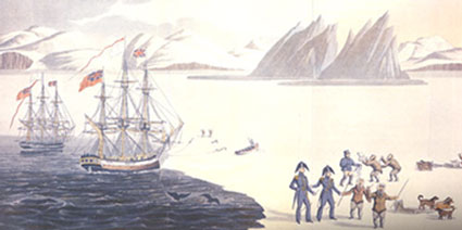 Ross spent no less than four winters in the Arctic. Penetrating deep into Prince Regent Inlet he reached the body of water he named the Gulf of Boothia, hemmed in to its west by the peninsula he named Boothia Felix. Here too the Victory would ultimately also be abandoned. The Arctic had lured the Victory into its depths during the mild winter of 1829 and then trapped it as the gulf remained frozen through the next summer and the next and the next. In the end the ship had to be abandoned and the crew trekked overland, dragging boats behind them to reach the beach where Parry had dumped the supplies of the wrecked Fury. Here they spent the winter of 1832 in a cabin they named Somerset House, eking out their rations and catching what game they could. Only a single man, the carpenter, was lost to scurvy though all suffered its effects. Finally in the following spring they were able to make their way out through Lancaster Sound in small boats and were picked up by a passing whaler, which turned out ironically to be the Isabella, Ross' 1819 flagship.
