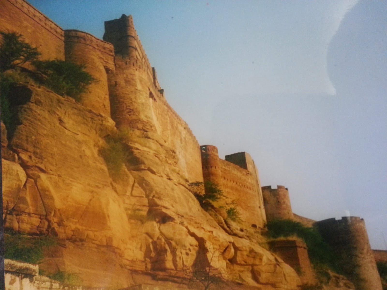 Massive. That's the only word to describe the walls of Mehrangarh Fort which towers over the city of Jodhpur. It is hard to know where the natural rock ends and the walls begin.They appear utterly unassailable. And the scars of cannonballs that ricocheted from their surface leaving barely a dent is testament to that. Of all the great castles and forts I have seen, this is the mightiest. To stand at the foot of the walls and look up is to be in awe at the feat of its construction and it looks like something out of a fantasy novel, something built by giants. Through seven gates you make your way up the steep sloping road that leads eventually to the palace at the top. The delicacy of its construction is a remarkable contrast to the mighty outer defences. Here the imposing power of the Mughals gives way to grandeur and the halls are filled with a magnificent collection of ornate howdahs and palanquins from the hey day of the pomp-loving rulers. On the way back down I paused to see preserved on the wall the hand prints of the wives of the last independent ruler of Jodhpur, who committed sati in defiance of a British ruling which had outlawed the practice. It is a potent symbol of the passing of one empire and the rise of another.