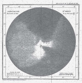 Nicolas Claude Fabri de Peiresc Having established himself as an astronomer of note De Peiresc then turned his attention to one of the vexing problems of the age; the accurate calculation of longitude. Seizing upon the opportunity of a lunar eclipse in 1635, De Peiresc on his own initiative dispatched agents to Rome, Cairo and Aleppo in order to record simultaneous observations of the event. From his resulting calculations De Peiresc was able to provide a revised estimate of the length of the Mediterranean, reducing the previous figure by an astonishing 1000km, not that they had kilometres back then! In the following year he produced the first recorded map of the surface of the moon. The nebula that De Peiresc had discovered attracted the fascination of other notable astronomers. Christiaan Huygens produced a diagram of the nebula in 1656 and it came to the attention of the great cataloguer of nebulous objects Charles Messier in 1769. Messier's drawing of the nebula, which he designated M42, appears at the top of the post. Messier was primarily concerned with the search for comets and his cataloguing of other deep sky objects was intended to assist in this enterprise. The question remained however; just what were these nebulae made of? In 1814 the invention of the spectroscope by the expert lens maker Joseph von Fraunhofer presented the means to investigate the nature of nebulae.