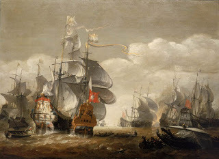 In the following year Dreadnought saw action again under the command of Prince Rupert of the Rhine, coming late to the epic Four Days Battle fought off Dunkirk. Rupert’s squadron arrived on the third day of the battle to find the English hard pressed and joined in the action of the final day but was forced to withdraw en masse after Rupert's flagship the Royal James was dismasted and had to be towed to safety. Captain of the Dreadnought on that day was former buccaneer Edward Spragge, who was knighted for his courage in the battle. Spragge was disgraced just a year later however for his failure to adequately defend Sheerness Fort and prevent the brazen Dutch raid on the Medway which saw the Royal James burned and the Royal Charles towed away as a prize, causing Samuel Pepys to lament in his diary. All our hearts do now ake; for the newes is true, that the Dutch have broke the chaine and burned our ships, and particularly the Royal Charles, other particulars I know not, but most sad to be sure. And, the truth is, I do fear so much that the whole kingdom is undone…