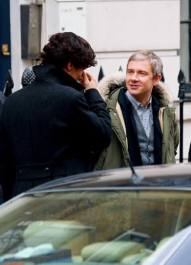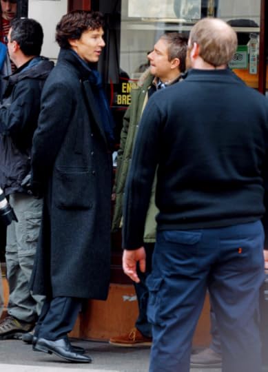 Benedict Cumberbatch and Martin Freeman filming Sherlock s3