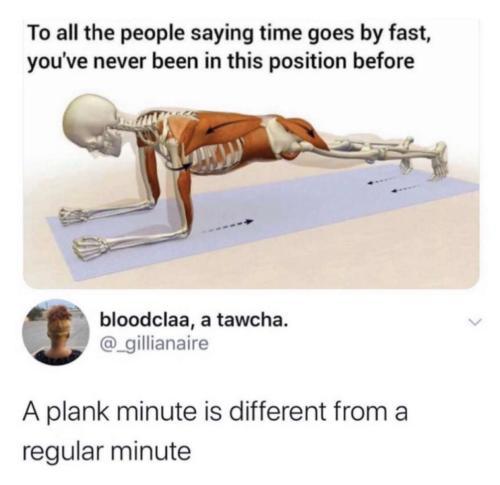 It’s very true. Plank minutes are tied only with running minutes...