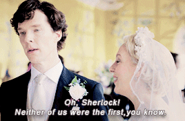 Her utter GLEE at Sherlock’s unhappiness makes me hate her just beyond words. It’s her wedding day, indeed - she’s already won John and they both know it. This is her rubbing it in AND twisting the knife with this unnecessary provocation of implying that there’s some other guy in John’s life who’s more Sherlocky than Sherlock himself. Seriously Mary, go fuck yourself.