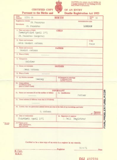 Something Sherlock Holmes and I have in common: We both managed to get our hands on John Watson’s birth certificate.