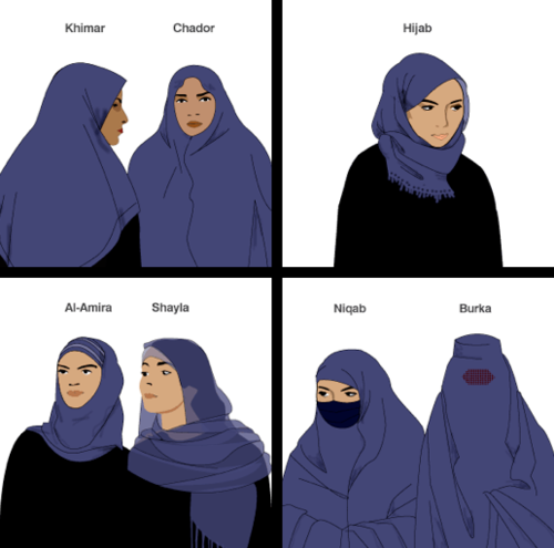 So many ignoramuses out there calling a hijab a burqa… reblogging for the spread of knowledge! And also because two of these were new to me, too!