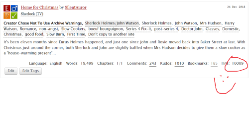 Heyyyy, look! Home for Christmas, aka the second of my three Christmas fics just reached 10,000 hits!! This is a slow burn involving boeuf bourguignon and a mutual love for glasses, hahaha! Thanks for giving this one a read if you did! And if you didn’t, cold weather just hit the Canadian prairies, so the Christmas spirit might be following close behind! :P