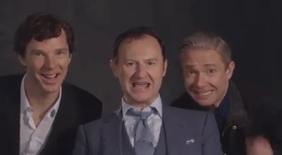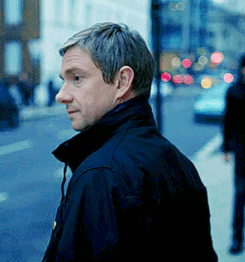 He is glaring at the guy in the 2nd gif and then his face turns soft as he looks towards Sherlock in 221B