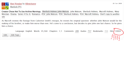 Eeeee! My story Sine Nomine just attained its first 10,000...