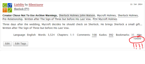 Hey hey, my little fic Liability just hit 10,000 hits! This little story is one of my very few (I think I have three now??) Mycroft POV fics, and one of the four intra-series stories I wrote as series 3 was airing. This is the fourth and last of them, posted between the airing of The Sign of Three and His Last Vow. It may be the first fic that predicted anything evil of Mary (in this story, the child isn’t John’s) before the big reveal of HLV. It’s just a short fic, under 4,000 words, which is VERY short for me! Thanks for reading this little story and giving it love!
